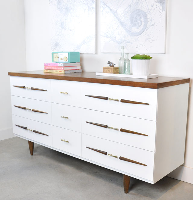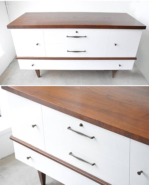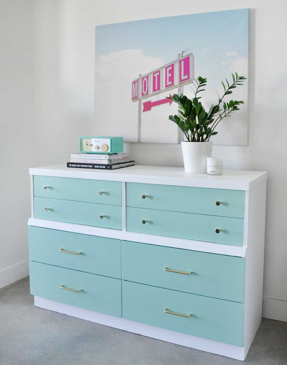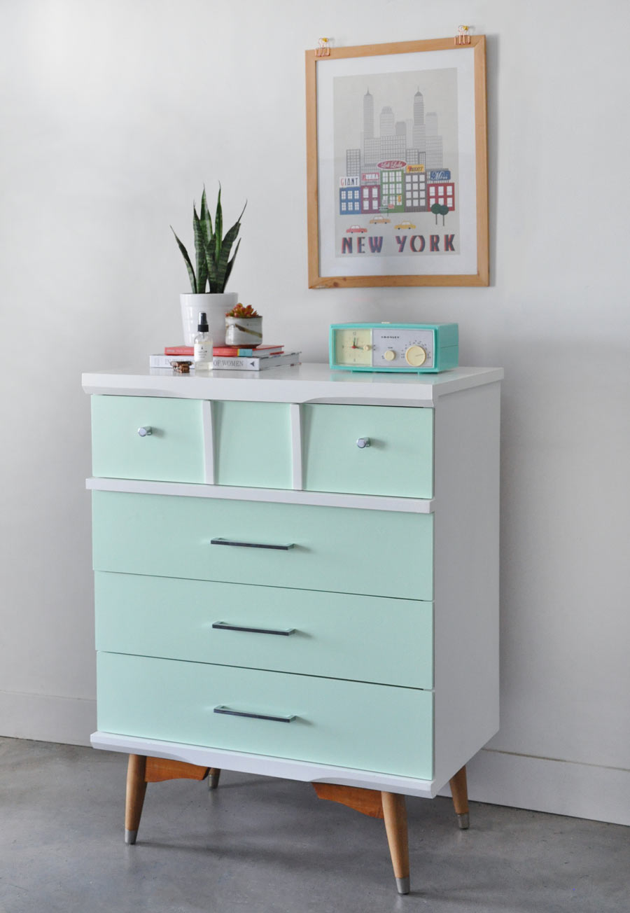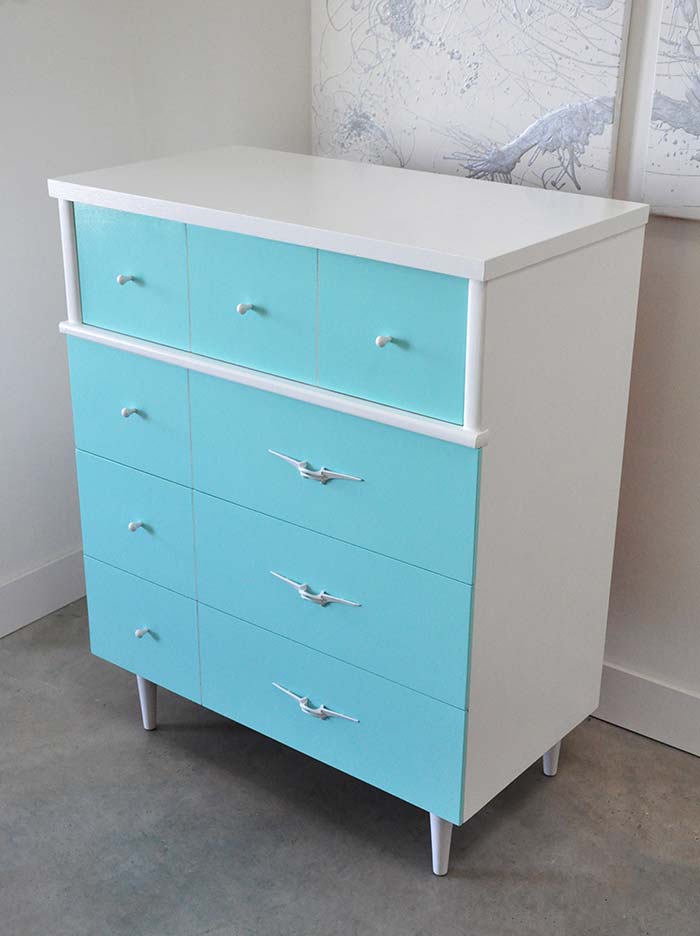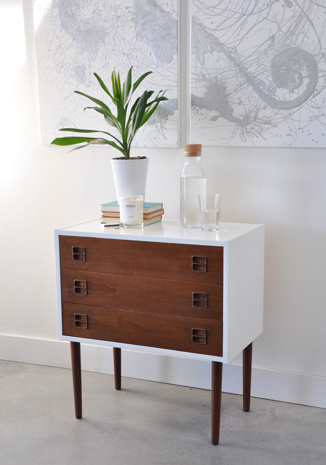 I renovate and up-cycle vintage furniture with help from my boyfriend Andrew. It’s a satisfying feeling to give new life to an old dresser or side table by up-cycling it. We only paint pieces that are plywood, laminate or badly worn veneer that cannot be salvaged. It’s great for the planet because up-cycled furniture means you’re recycling old into new. We’re taking something that could potentially end up in the landfill and making it new and functional again. In the posts below you can follow my process and see full before and after photos of each piece.